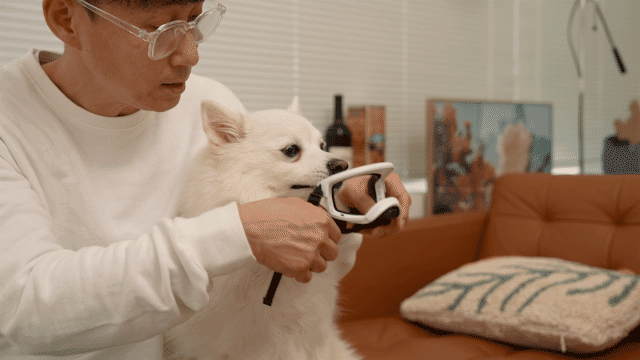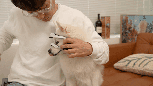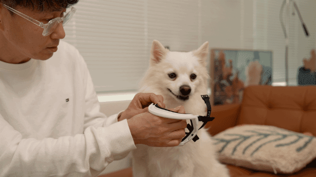 대신, 시간이 오래 걸리더라도 둔감화 교육을 충분히 진행시켜 반려견이 견글라스에 거부감을 갖지 않도록 만들어 주세요.