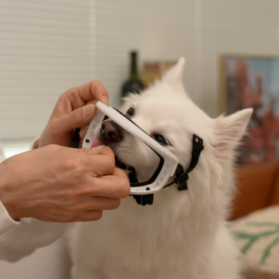 견글라스를 처음 사용한다면 어색해 하거나, 벗기려고 하는 것이 당연합니다. 본격적인 사용 전 둔감화 교육을 선행해 주세요.